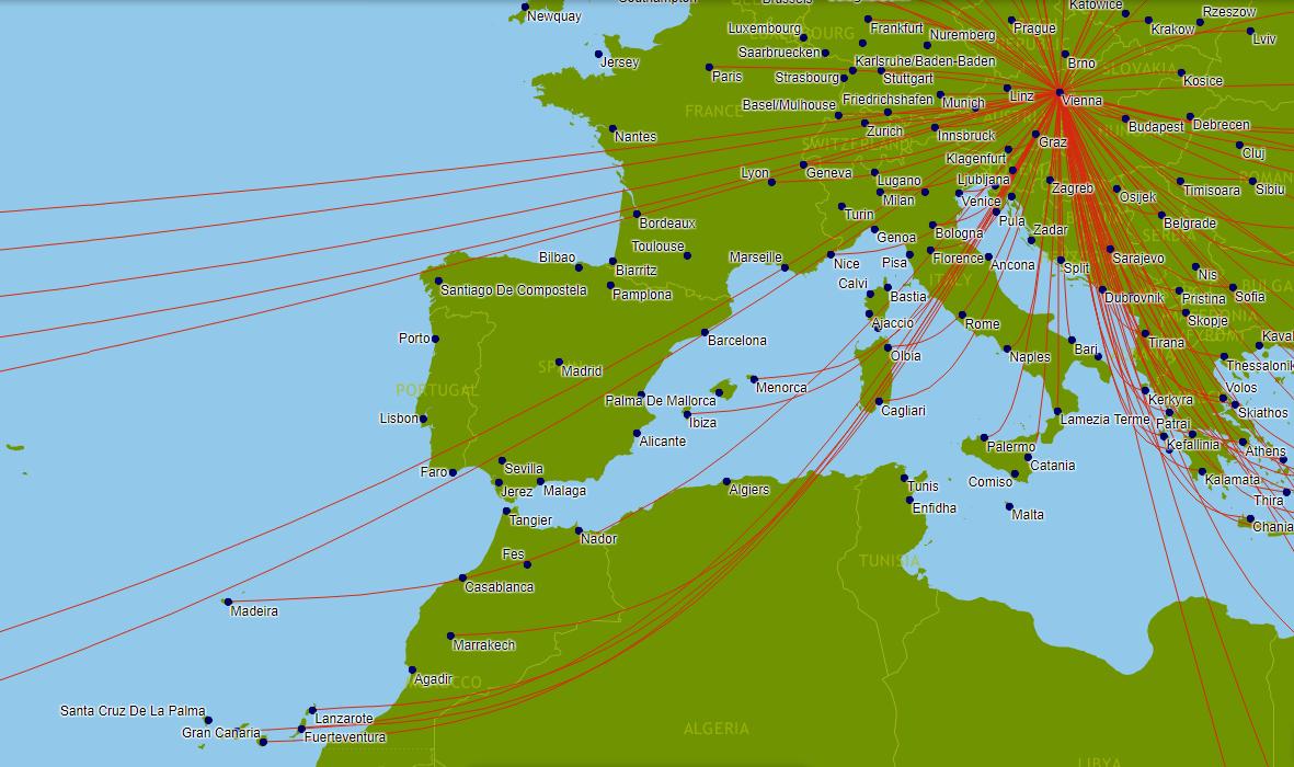 Austrian airlines destinationer karta